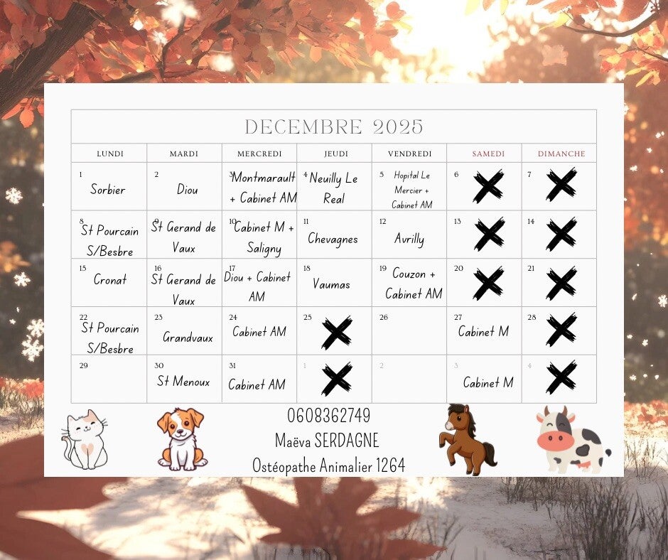 Les frais de déplacements ne sont pas inclus et doivent être prévus pour tout déplacement supérieur à 30km.
